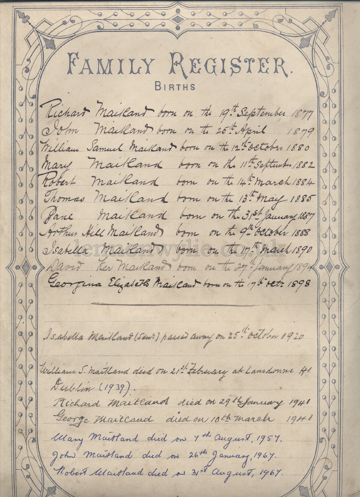 1) The Family Register of George Maitland - Born at