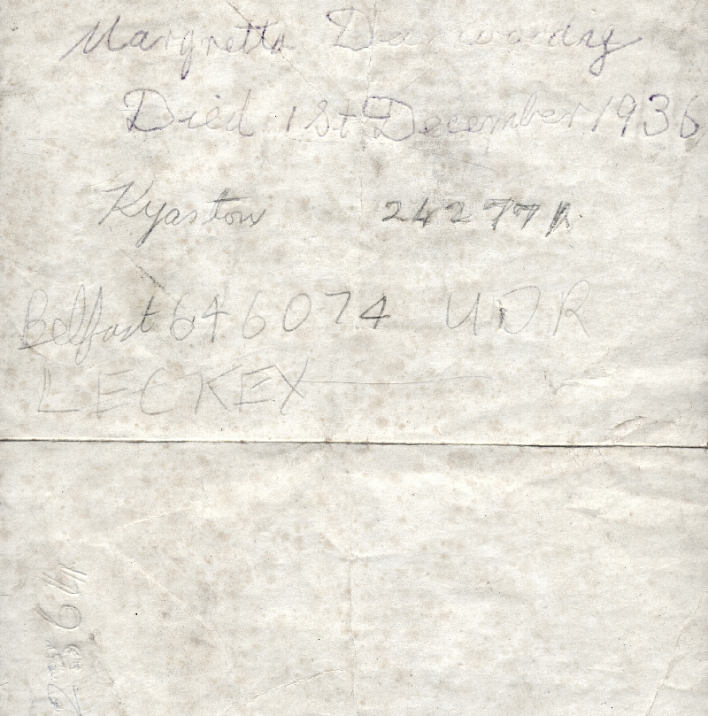 22.1.1910, Died 24th March 1994 at Belfast City Hospital.