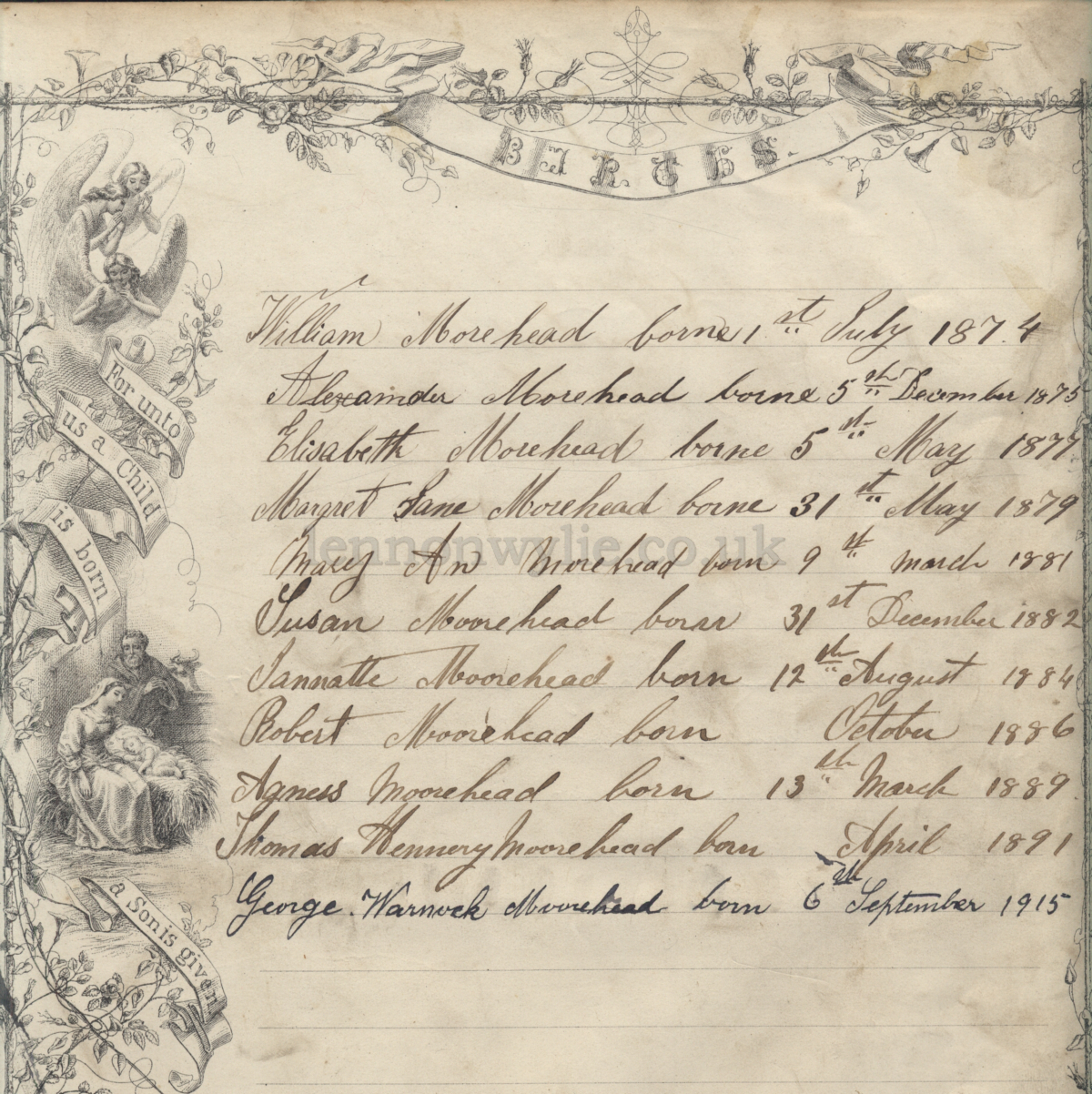 3) Births: William Morehead borne 1st July 1874 -