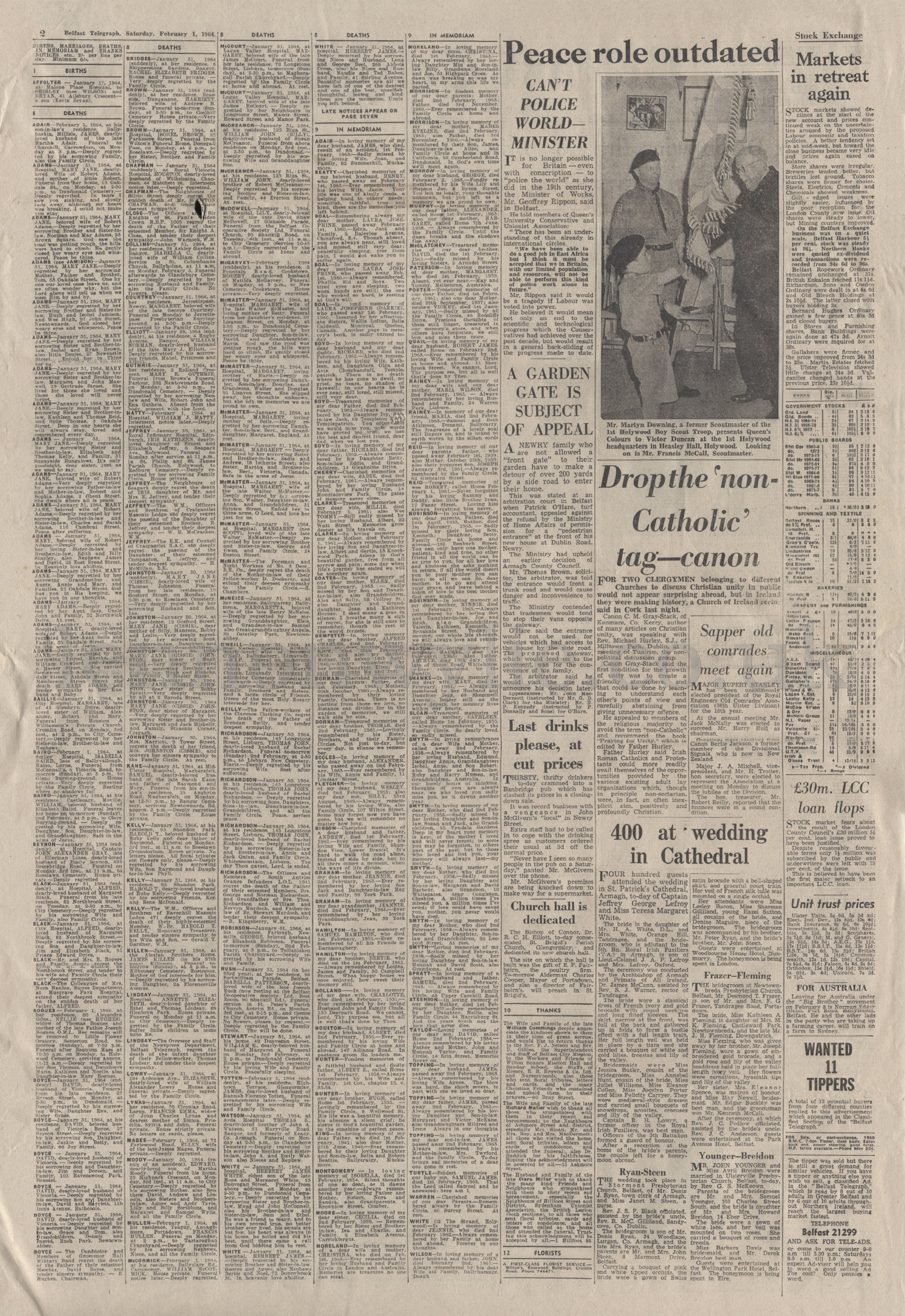 continued - Belfast Telegraph 1st February 1964 Peace role outdated,