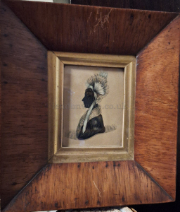3) copy of note inside the frame: Likeness of Mrs. Maria McCleery née